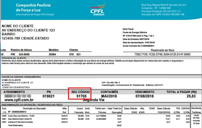 Na conta de luz da EDP, por exemplo, o número de instalação fica ao lado do mês ao qual a conta faz referência e acima da data de vencimento da mesma, como se pode verificar na imagem abaixo. A maioria das concessionárias de energia elétrica segue o mesmo padrão para número de instalação na conta de luz, de forma que essa é a maneira mais fácil, rápida e prática de ter acesso ao número. Na CPFL, o número de instalação vem com a inscrição "seu código".