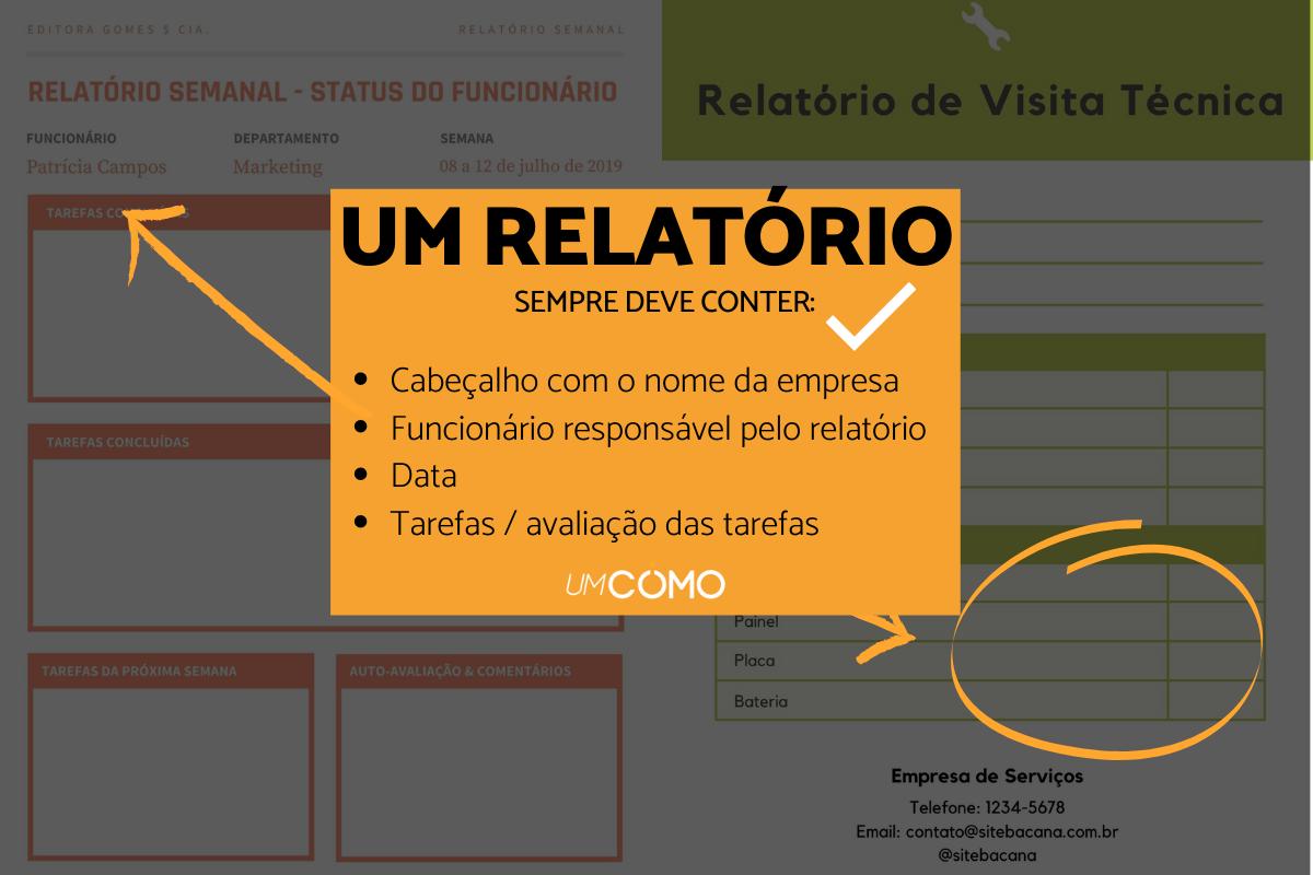 Observe que independente do conteúdo, é importante que seu relatório contenha: