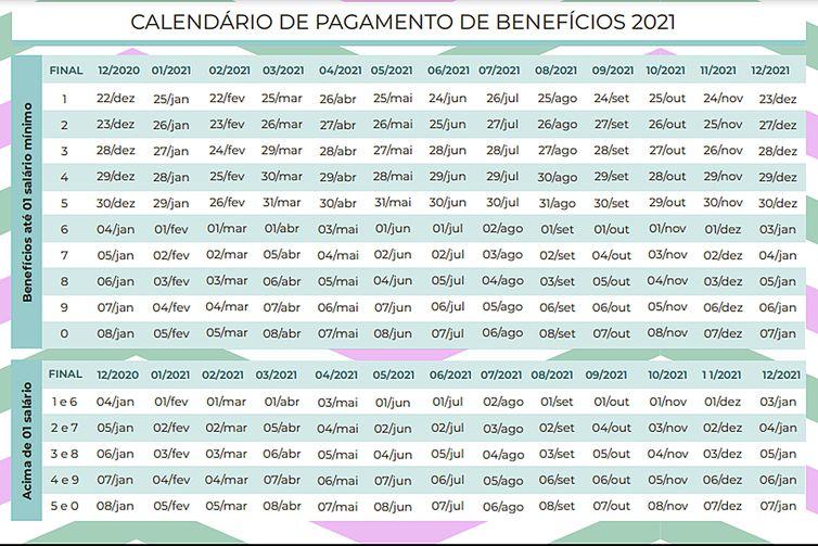 Confira abaixo a tabela de pagamento do INSS em 2021 divulgada pelo Instituto Nacional da Segurança Social: (INSS):