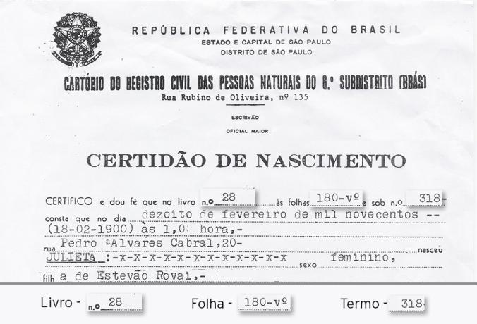 - O número da folha corresponde à folha em que seu registro de nascimento foi feita, dentro daquele determinado livro;