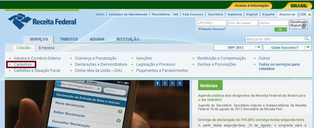 Aceda à página da Receita Federal. Ou clique aqui para ir diretamente para a página.
