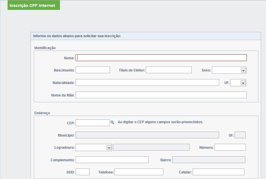 No fim de preencher os dados solicitados no formulário, basta clicar no botão "Enviar". Se a inscrição for feita com sucesso, irá aparecer-lhe o número de inscrição do CPF e o comprovativo. Imprima o comprovativo ou anote o número, para o utilizar. Se houver qualquer tipo de problema ao fazer a sua inscrição, aparecerá uma informação para o contribuinte se dirigir a uma unidade conveniada - BB, Caixa ou Correios.