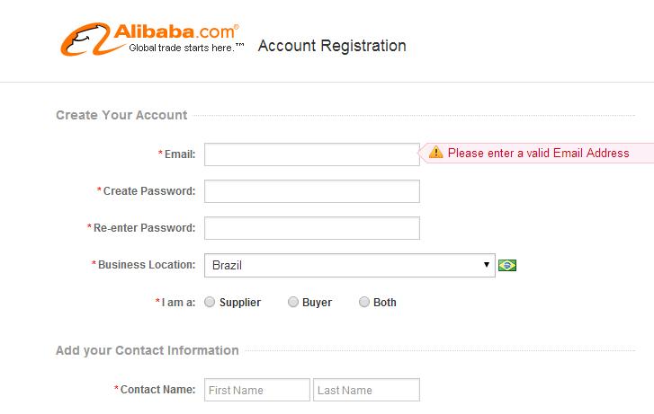 Preencha os dados do formulário. O cadastramento como vendedor no alibaba é totalmente gratuito.