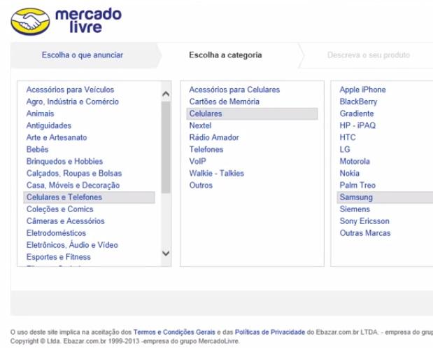 Quando já tiver reunido todo esse material, é hora de o colocar no Mercado Livre. Volte à página onde se encontrava e escolha a categoria de produto de pretende vender. Na página seguinte irão surgir subcategorias e você deverá ir escolhendo aquelas que definem melhor o seu produto, de forma a transmitir totalmente o tipo de objeto que se trata.
