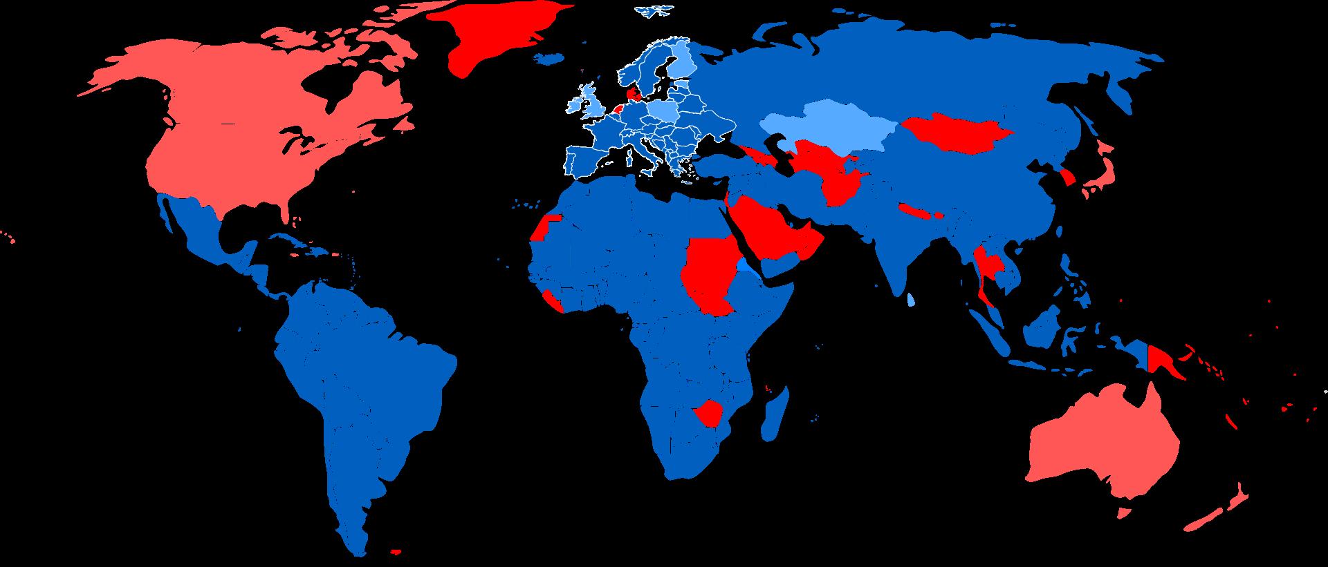 O primeiro de maio é comemorado como Dia do trabalho e é feriado em todos os países em azul no mapa. São eles: